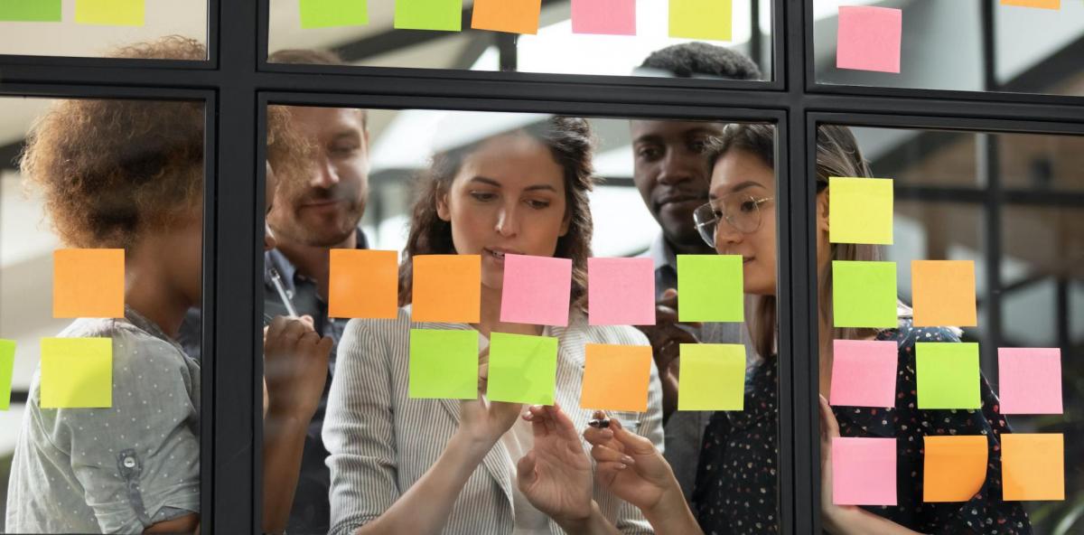 Photo Credit: Fizkes/Shutterstock.com (Students & sticky notes); Lechatnoir (Two women); Alvarez (Classroom instruction); Fizkes/Shutterstock.com (Group photo)